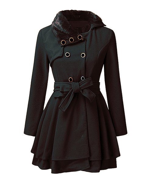 Black Faux Fur-Trim Trench Coat