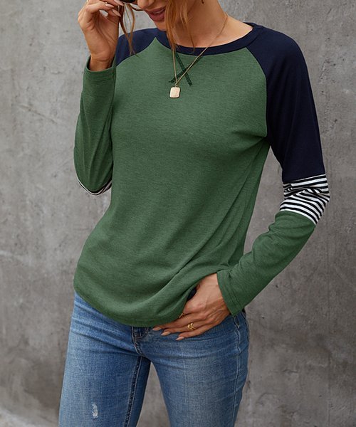 Green & Black Color Block Raglan Top